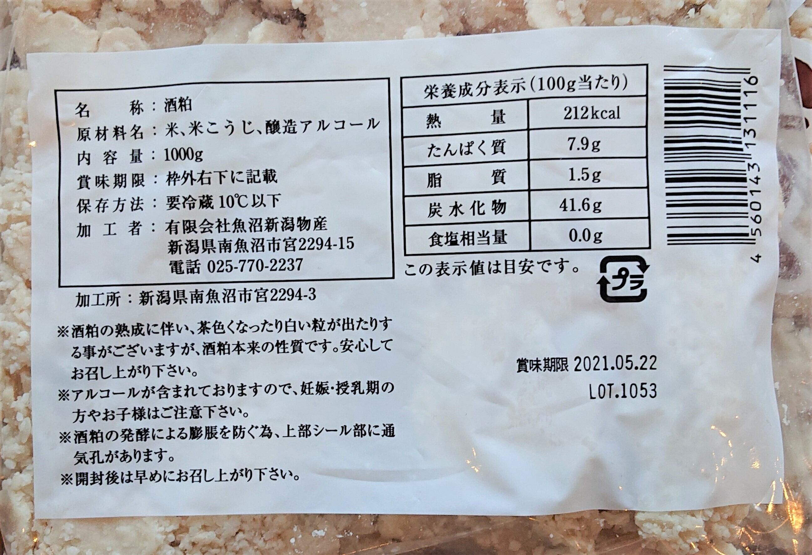 八海山 酒粕 1kg